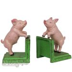 Gietijzeren boekensteunen met twee Hanen.
