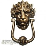 Zwaar uitgevoerde gietijzeren deurklopper met een duivel hoofd.