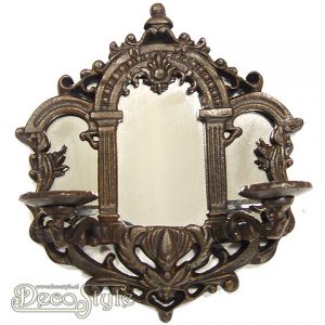 Nostalgisch jugendstil spiegeltje met twee kaarsenhouders uitgevoerd in zwaar gietijzer.